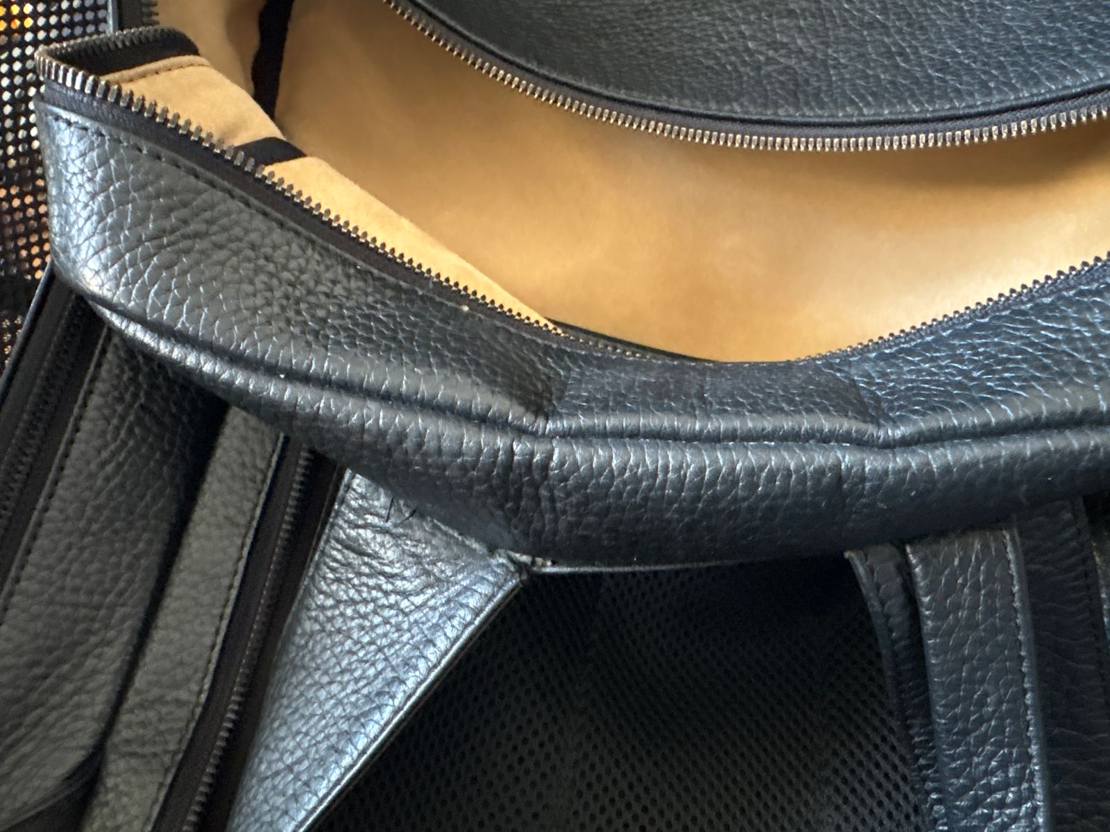 6,スクエア型のバックパックは重い物を入れると上部が凹みがちですが、上部に硬い芯材を入れることで新品同様のきれいなフォルムを保てるよう設計しました。